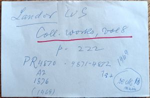 - Super, R. H.: W. S. Landor, N. Y. 1954, N. Y. Univ Press, 654 p. PR4873 S83
